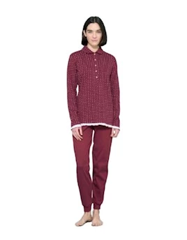 Pigiama a Serafino Con Colletto Donna in Caldo Cotone DN97N1
